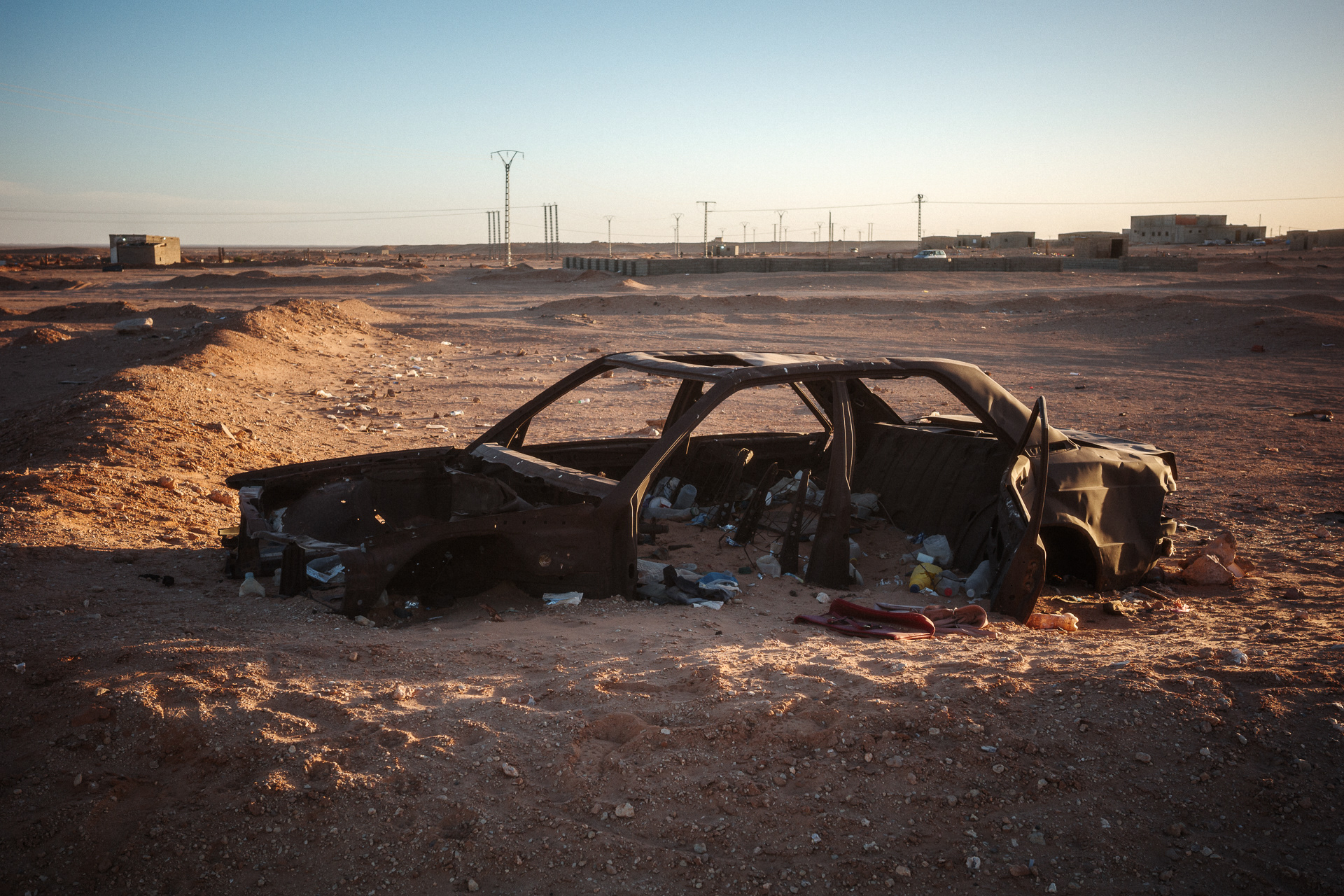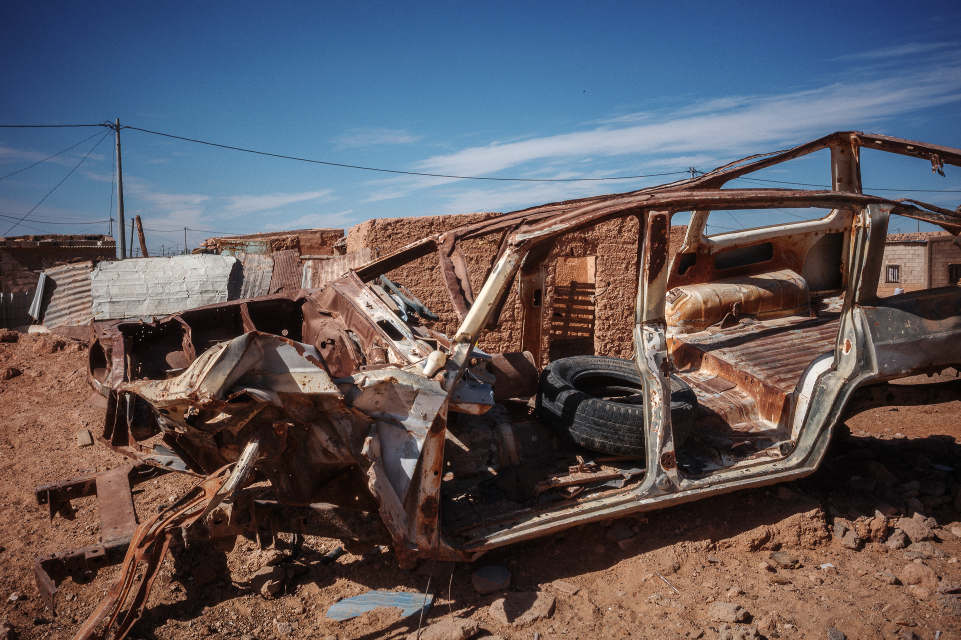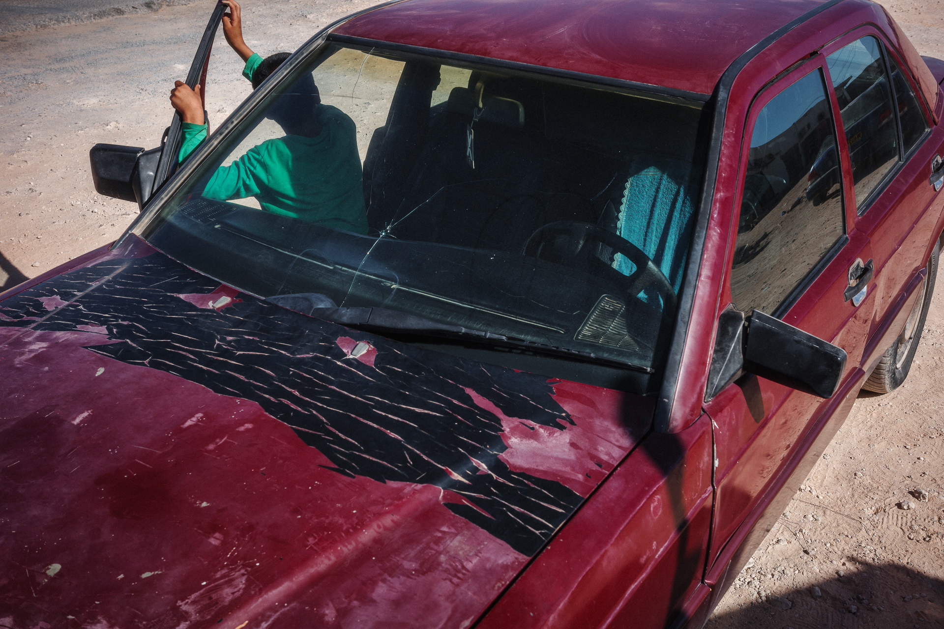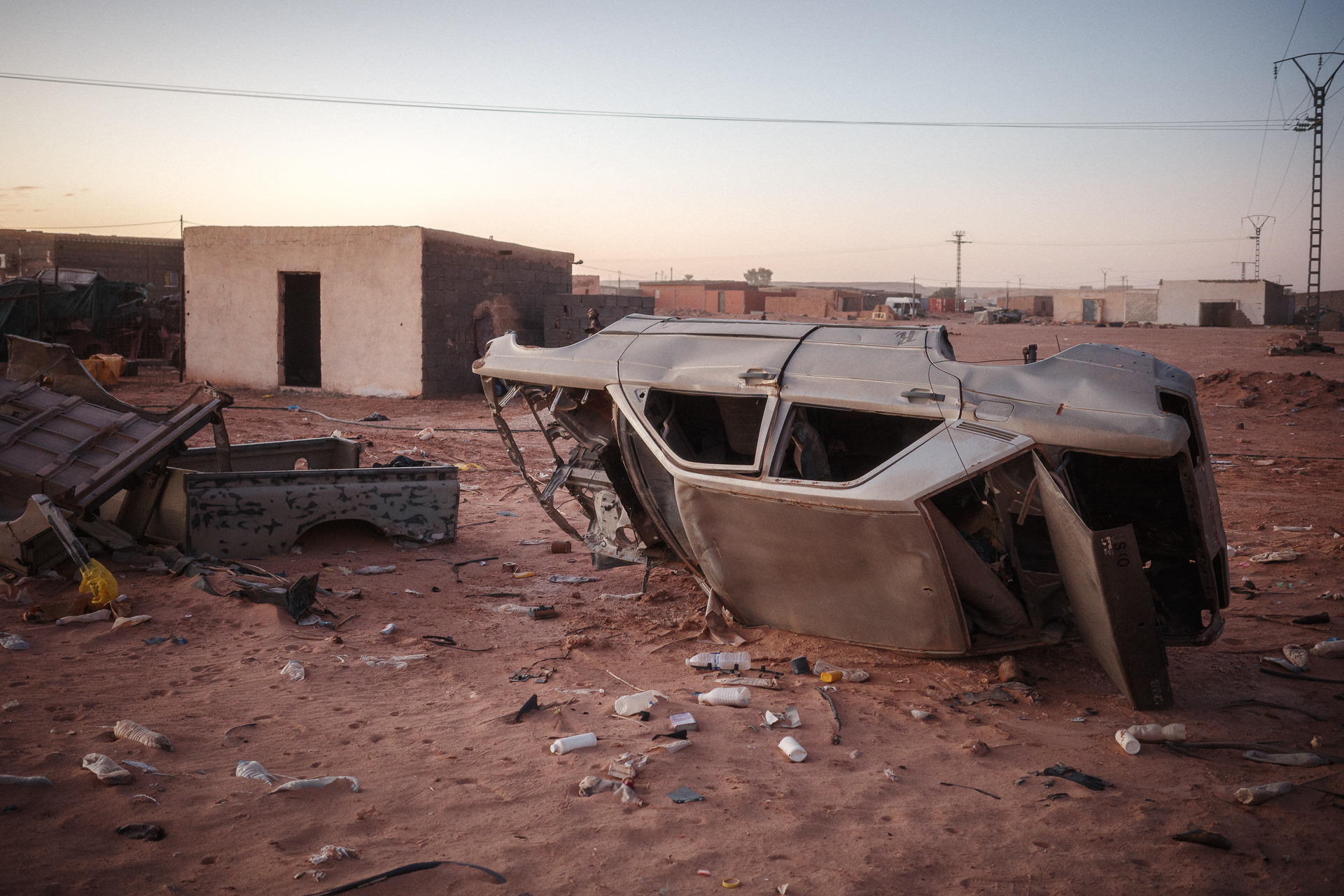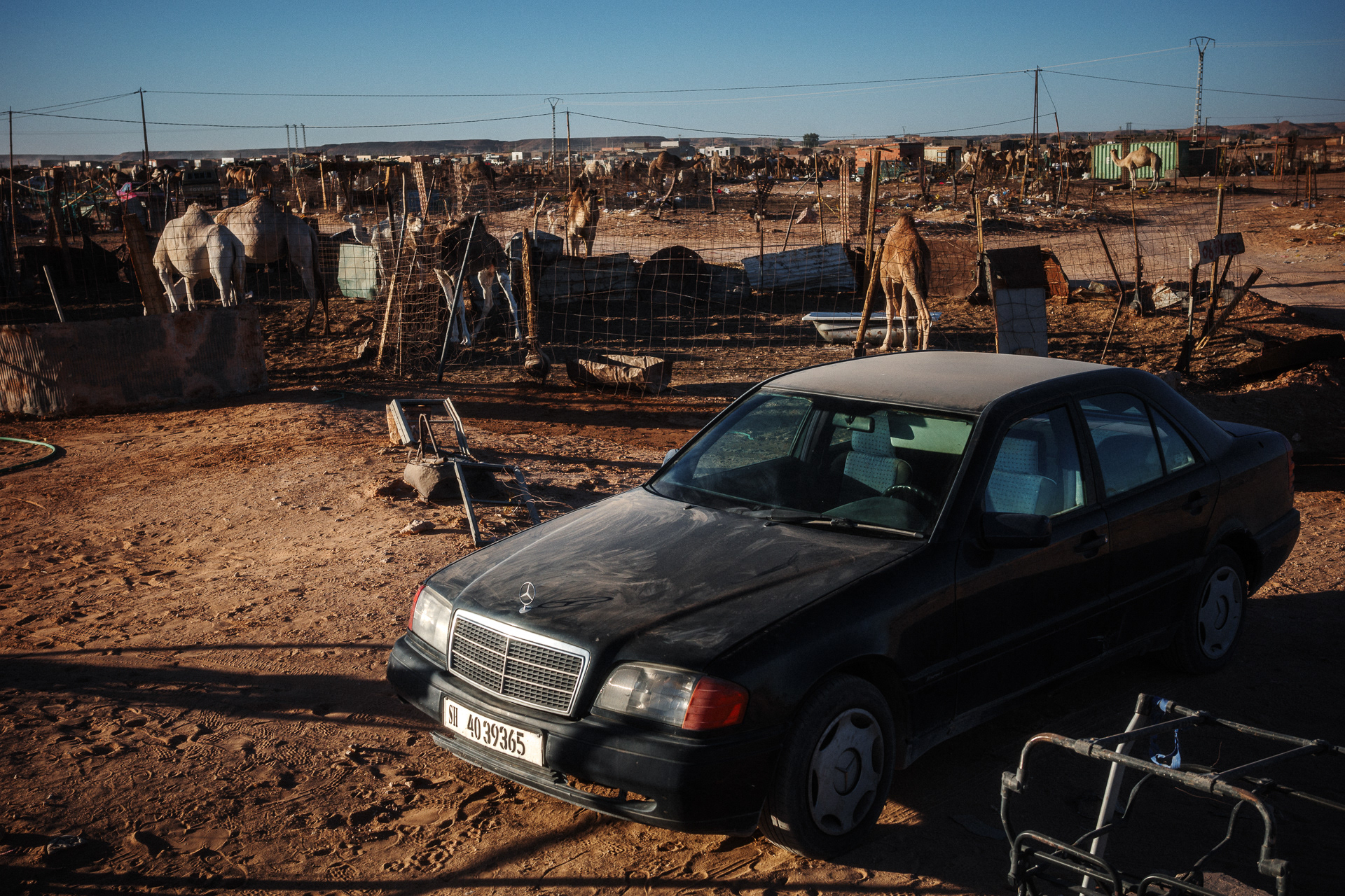 A transport fleet based on reuse is established. Unit maintenance does not respond to a commercial supply chain, but to a circular economy system: inoperative vehicles are systematically dismantled to provide spare parts for those still in circulation. Under the SH license plate, issued by the administration of the Sahrawi Arab Democratic Republic, these machines operate indefinitely through the constant transplantation of components.