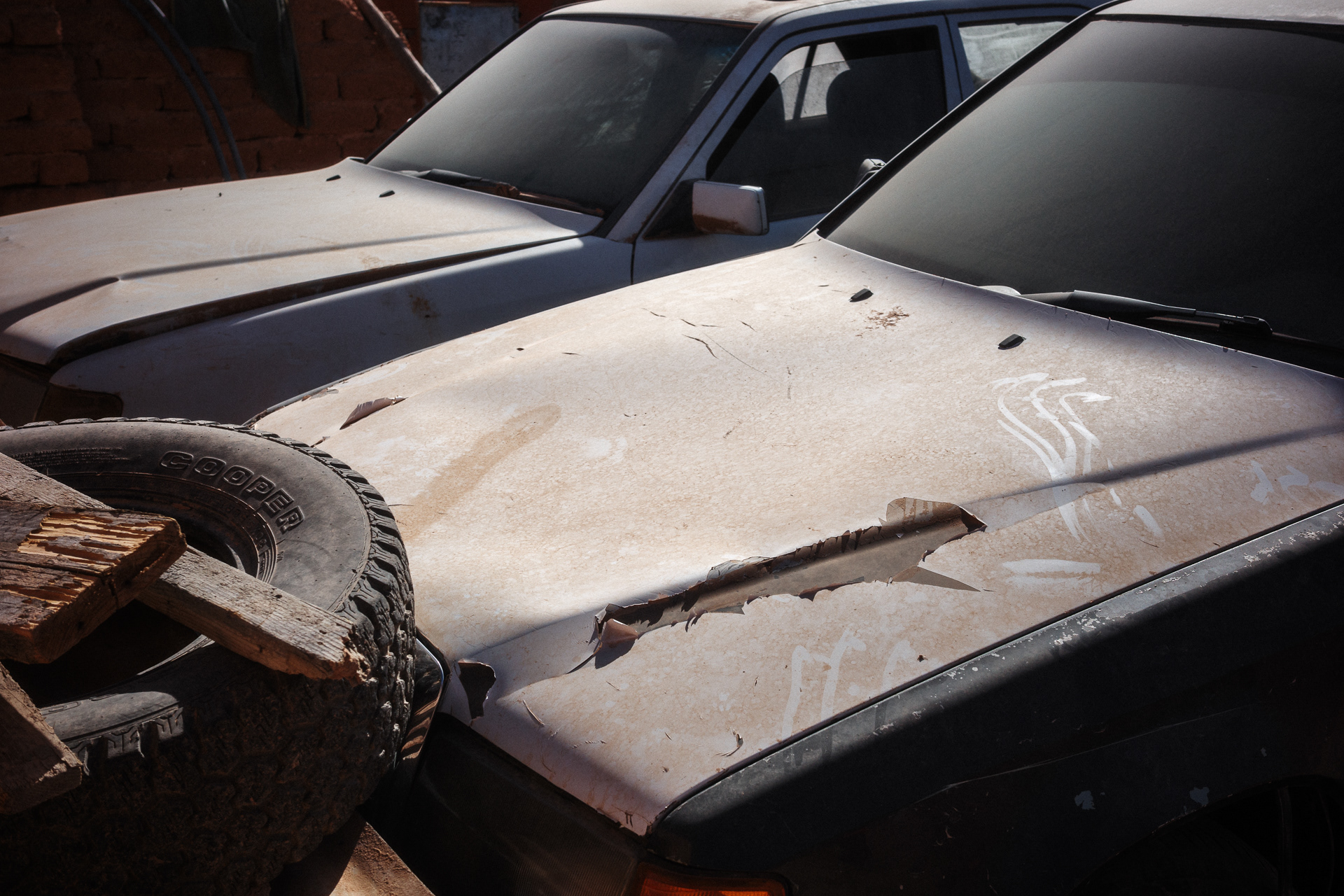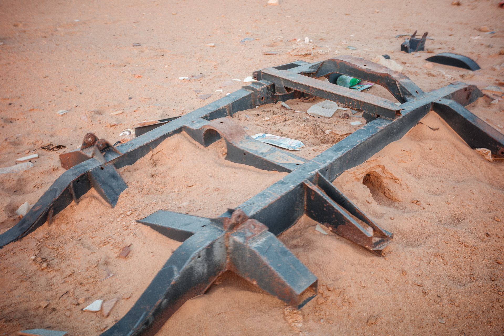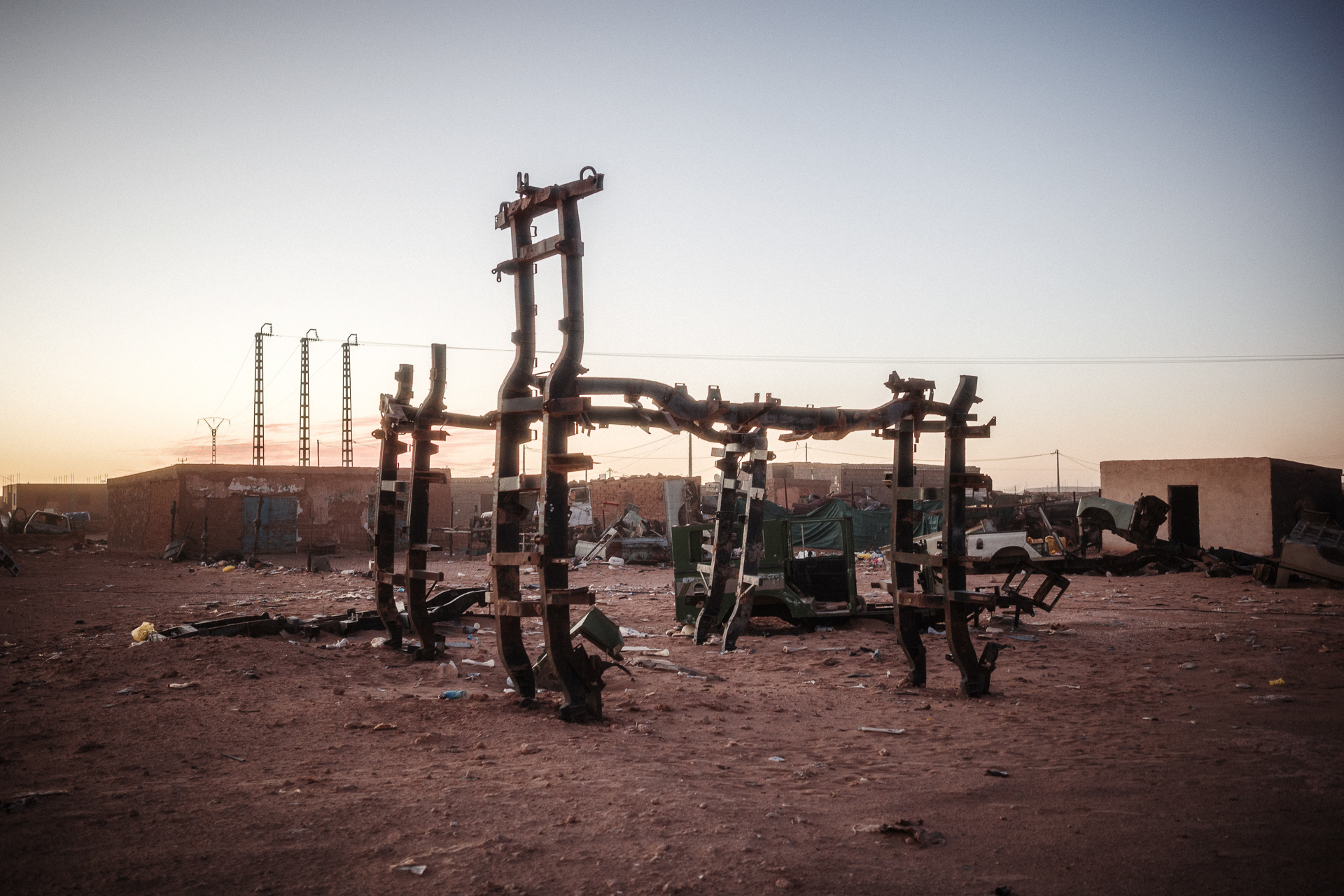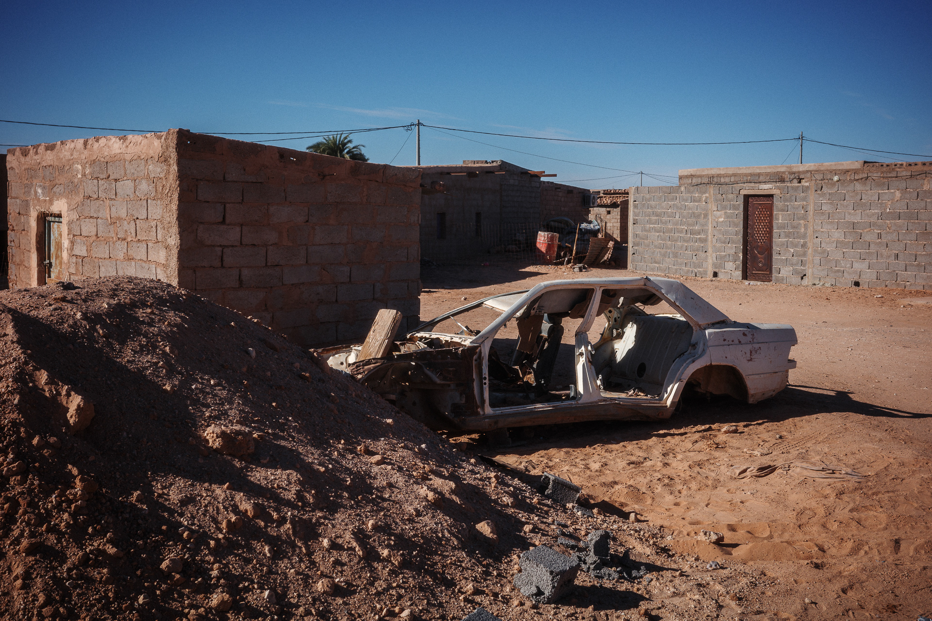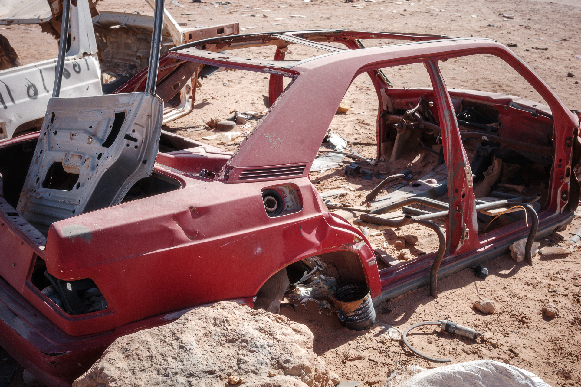 A transport fleet based on reuse is established. Unit maintenance does not respond to a commercial supply chain, but to a circular economy system: inoperative vehicles are systematically dismantled to provide spare parts for those still in circulation. Under the SH license plate, issued by the administration of the Sahrawi Arab Democratic Republic, these machines operate indefinitely through the constant transplantation of components.