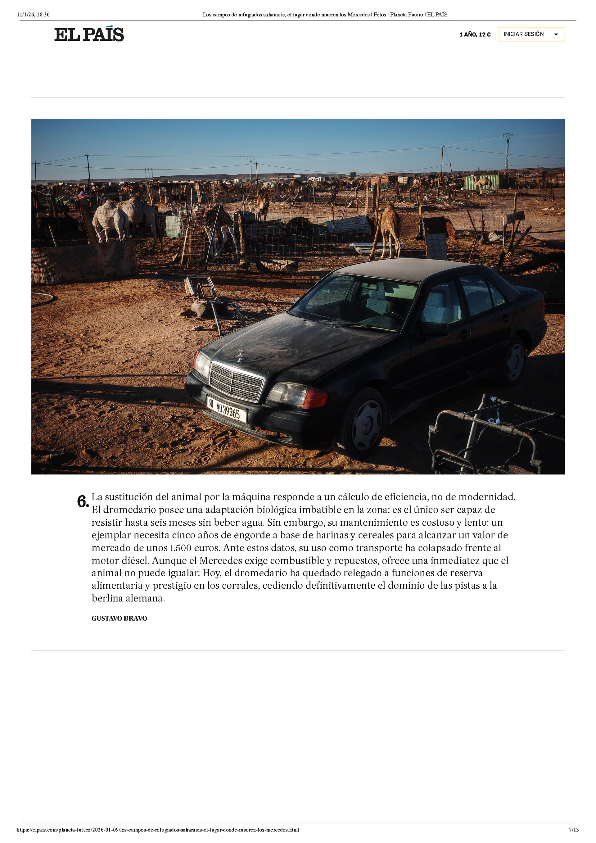Sustitución del animal de carga. El dromedario, con cinco años de crianza, es desplazado por la inmediatez del motor diésel. El activo biológico queda relegado a reserva alimentaria; el mecánico asume el transporte.