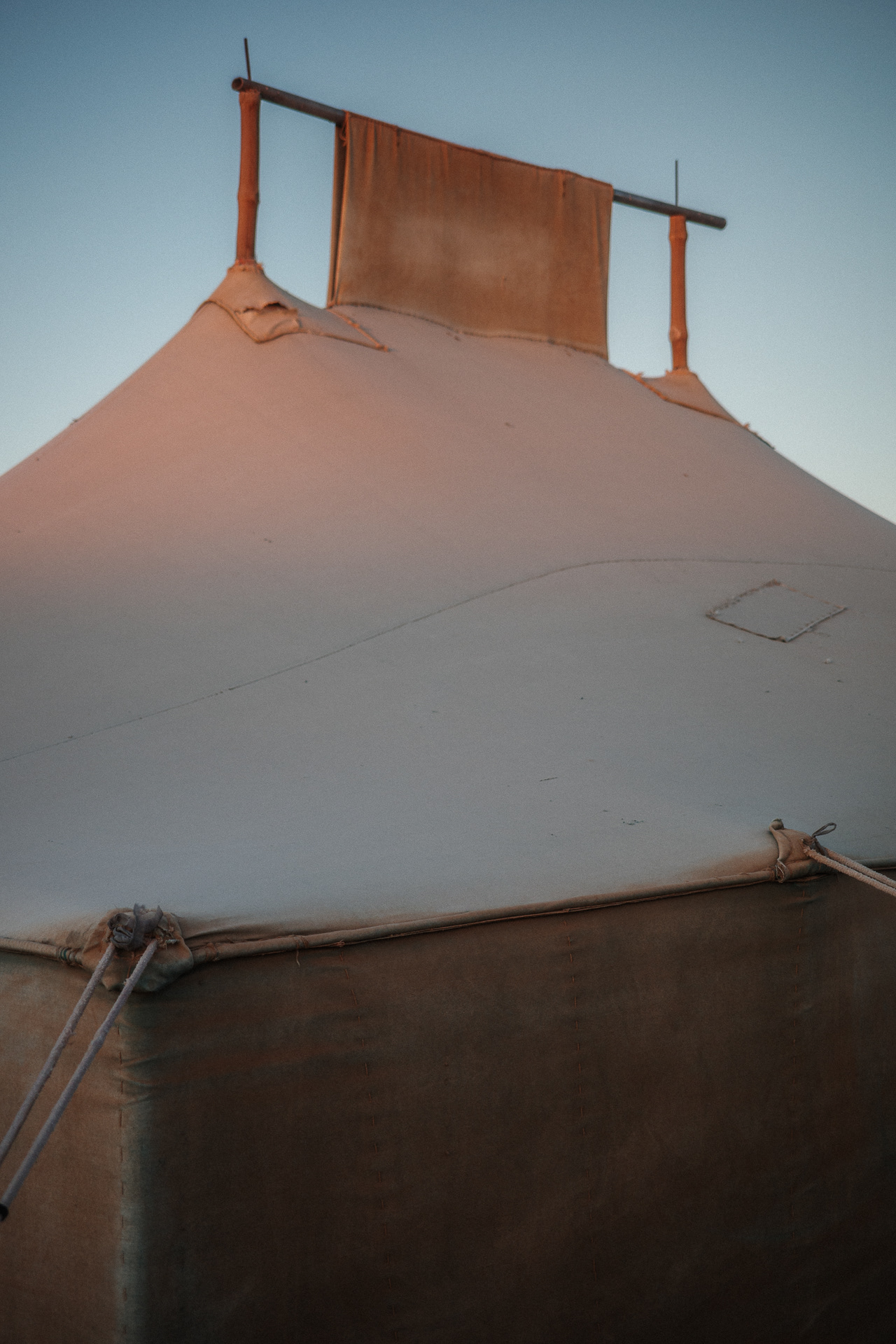 January 1976. European industry introduces the Mercedes-Benz W123 chassis to the market. The manufacturing chronology of the vehicle coincides with the onset of exile in the desert. Faced with the harshness of the terrain and corrugations on the tracks, the mechanical suspension and diesel injection engines demonstrate durability superior to modern vehicles dependent on electronics.