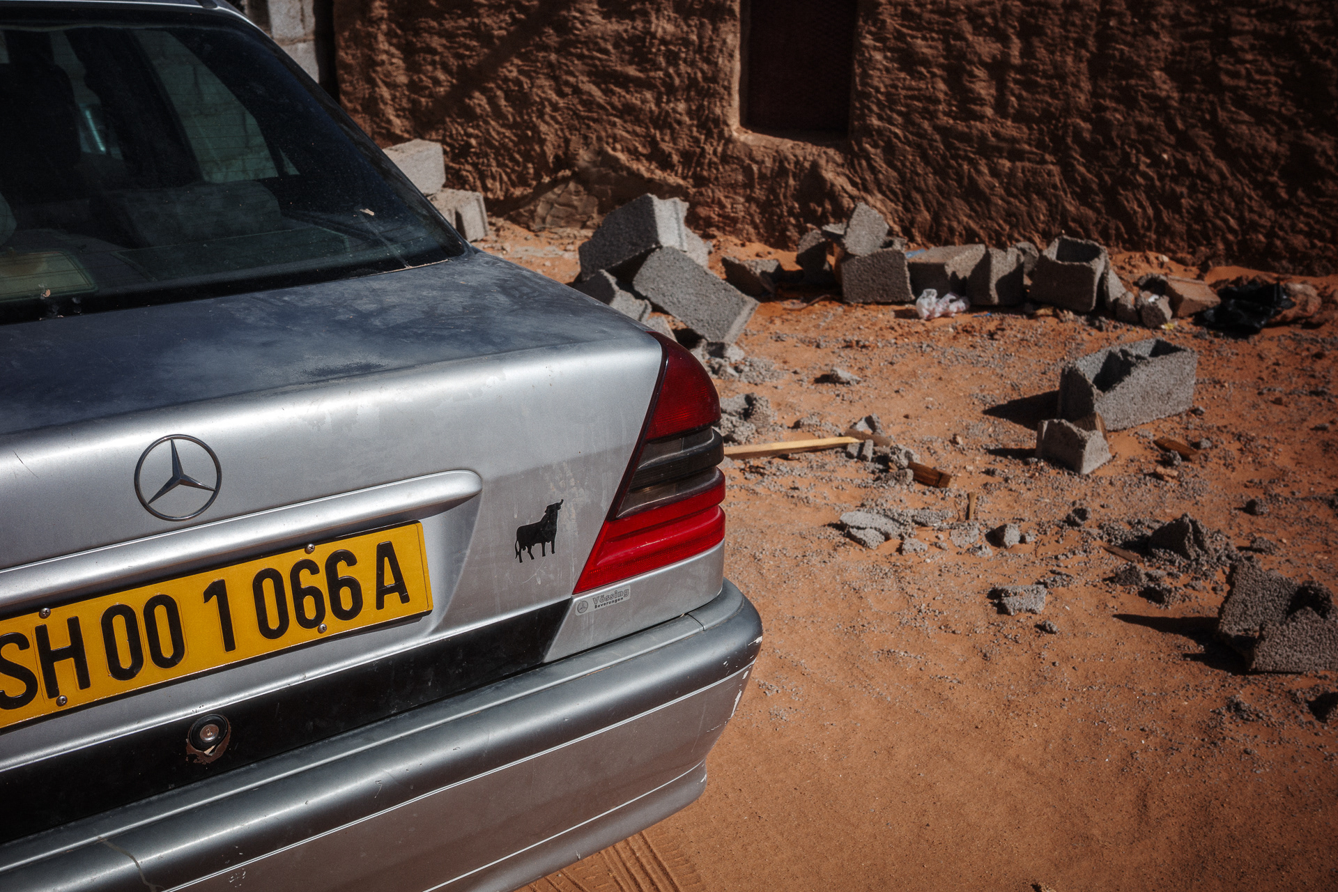Private vehicle as a class marker. In an economy dependent on humanitarian aid, possession of the engine draws the line of prosperity. Status anomaly.