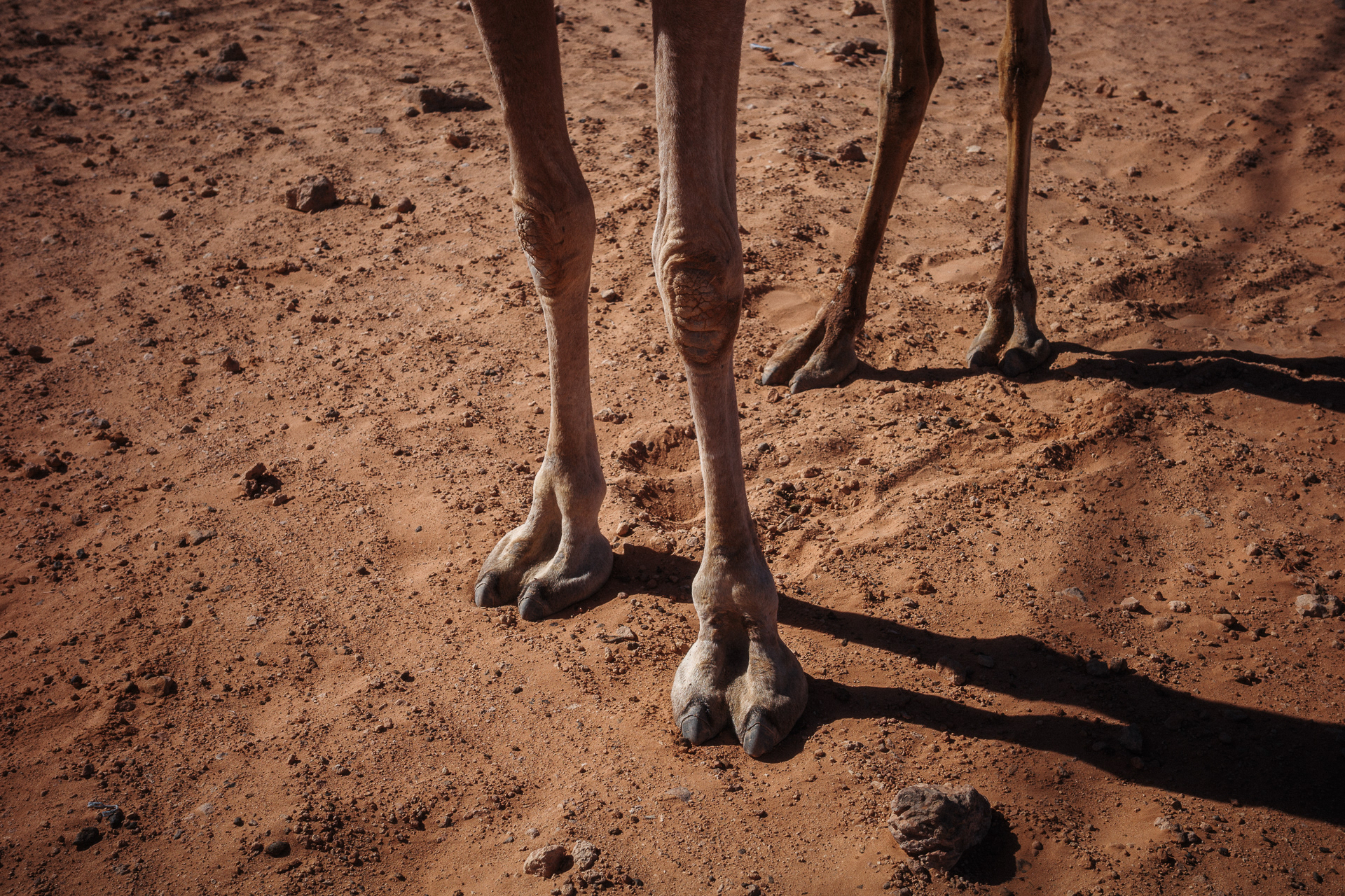 Substitution of the pack animal. The dromedary, requiring five years of breeding, is displaced by the immediacy of the diesel engine. The biological asset relegated to food reserve; the mechanic assumes transport.